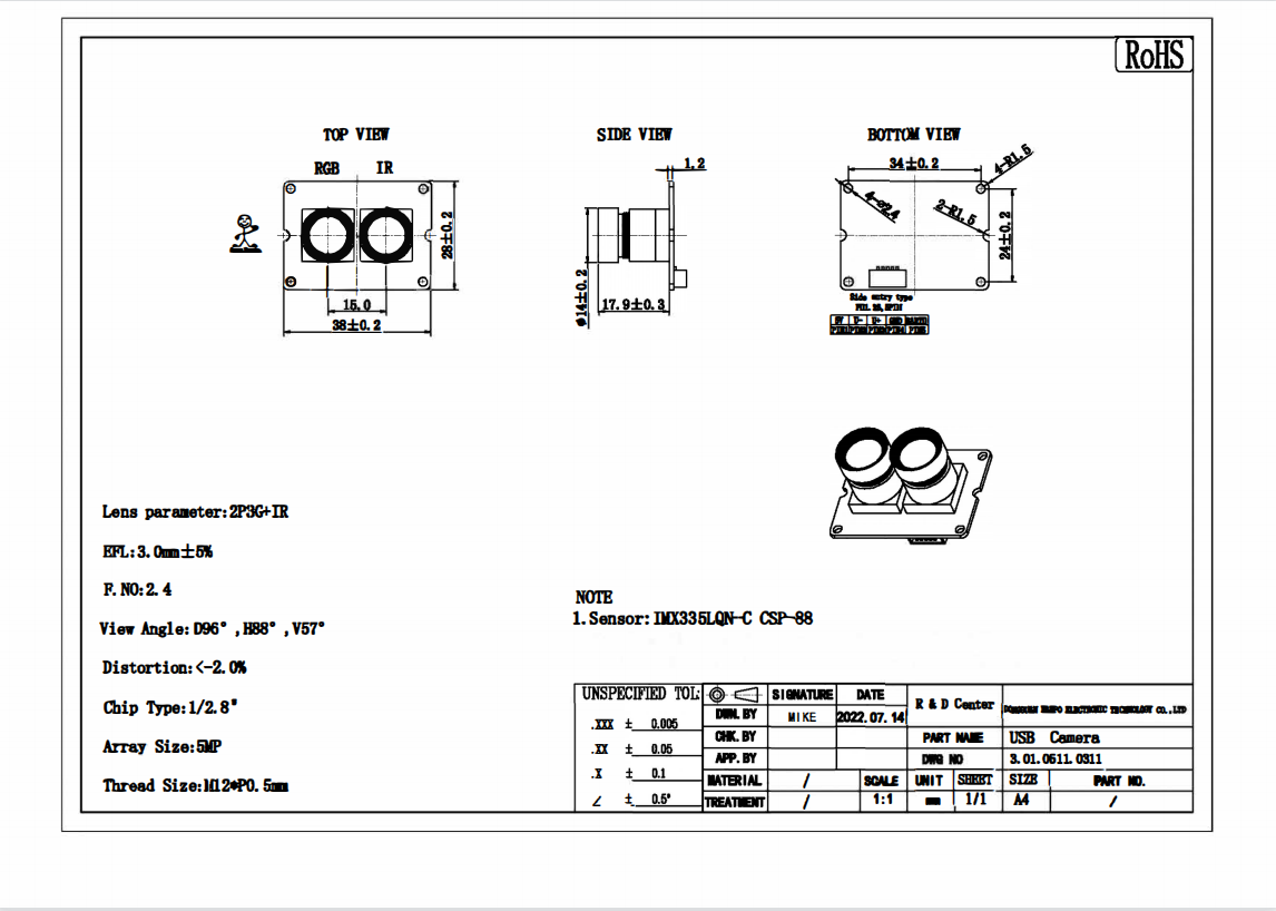 2. WDR USB Dual Lens Camera Module: WDR dual lens usb camera module use AR0230 image sensor with a 100db wide dynamic rage which is the high standard in terms of image quality and sensitivity performance. The image sensor helps to produce sharp images effectively. 3MP+1.3MP usb camera module with 89degree megapixel lens, the cameras module can meet most capturing and video requirements.